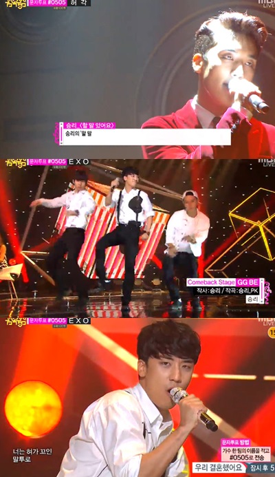 한편 이날 방송에는 승리를 비롯해 엑소 비스트 B.A.P 선미 임정희 제국의아이들 테이스티 대준 크레용팝 등이 출연했다.