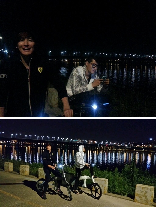 공개된 사진에서 김준수와 김준호는 한강의 야경을 배경으로 자전거와 함께 포즈를 취했다. 김준수는 미소를 짓는 김준호의 뒤에서 스마트폰 삼매경인 모습을 보이기도 했다.