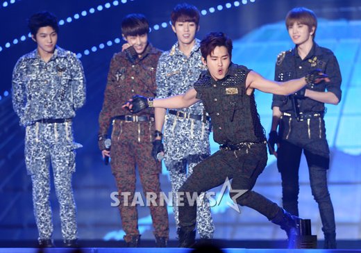 그룹 인피니트 호야가 20일 오후 경상남도 창원시 창원광장 특설 야외무대에서 열린 제3회 케이팝 월드 페스티벌에서 댄스 시범을 선보이고 있다.