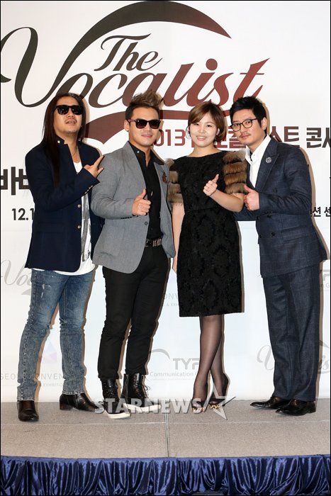 가수 박완규, 이정, 알리, 바비킴(왼쪽부터)이 14일 오후 서울 강남구 한국도심공항 서울컨벤션에서 열린 '2013 더보컬리스트 콘서트' 제작발표회에 참석해 포즈를 취하고 있다.