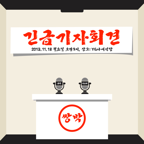YG엔터테인먼트는 15일 오후 3시 공식 블로그를 통해 '긴급기자회견, 2013.11.18 월요일 오전 9시, 장소 : YG 사내식당'라는 문구가 삽입된 이미지를 공개했다.