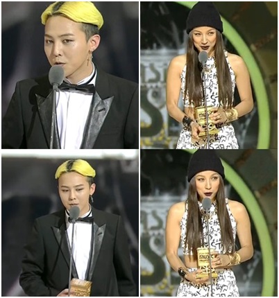 지드래곤과 이효리가 연말 가요 시상식 2013 MAMA에서 남녀 가수상을 각각 수상했다.