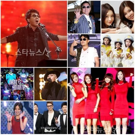 크레용팝= 올해 여름 대한민국 사람들은 듣보잡 댄스에 넋이 나갔다. 이쁘장한 걸그룹 멤버들이 헬멧을 쓴 것도 모자라 쩍벌 개다리춤을 추고 2명과 3명이 엇박으로 뛰어오르는 소위 '직렬 5기통춤'을 췄을 때 이미 승부는 끝난 것이나 다름없었다. 노래 또한 단순하고 경쾌했으며 사비는 강했다. '다같이 원 빠빠빠빠 빠빠빠빠/ 날따라 투 빠빠빠빠 빠빠빠빠/ 소리쳐 호 호 뛰어봐 쿵 쿵 날따라 해 해/ 엄마도 파파도 같이 고 빠빠빠빠 빠빠빠빠/ 신나게 고 빠빠빠빠 빠빠빠빠/...' 여기까지는 약과였다. '팝 팝 크레용팝'에 이어 '겟 셋 레디 고'로 스타트를 알리더니 마침내 '점핑 예 점핑 예 에브리바디 점핑 예 점핑 다 같이 뛰어뛰어'라는 숨은 비기를 꺼내든다. 맞다. 올해 유튜브와 '인기가요' 같은 가요프로그램을 통해 특히나 팝저씨들의 귀와 눈을 사로잡은 이들이 바로 크레용팝(엘린 소율 금미 초아 웨이)이었다. 웨이와 초아가 헤어스타일까지 똑같은 쌍둥이라는 점도 이들의 대칭댄스에 한몫했다. 표절과 일베 등 각종 논란이 끊이지 않은 이들이었지만, 올해 '빠빠빠' 자체의 화제성은 결코 묻힐 수 없다.