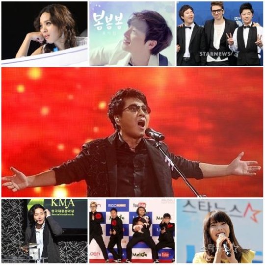 5. '벚꽃엔딩', 시즌송 부활 원년= 올해 음원차트에서는 진기한 풍경이 빚어졌다. 지난해 3월 나온 버스커버스커의 '벚꽃엔딩'이 올 초봄부터 슬슬 차트에 재진입하더니 급기야 4월 월간차트에서 쟁쟁한 신곡들을 누르고 5위에 오르는 파란을 일으킨 것. 사람들은 이를 두고 '차트역주행'이나 '시즌송의 부활'이니 호들갑을 떨며 경사로 받아들였다. 그만큼 해가 바뀌어도 들을 만한 노래가 최근 가요계에서 없었다는 반증이다. '벚꽃엔딩'의 성공으로 올 여름, 가을, 겨울에는 그동안 씨가 마르다시피했던 시즌송이 유난히 많이 등장했다. 한편 버스커버스커가 올해 '가을송' 격으로 발매, 10월 월간차트 1위를 차지한 '처음엔 사랑이란게'가 내년 가을에 또다시 차트 역주행의 솜씨를 보여줄지 기대를 모은다.