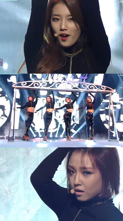 걸그룹 미쓰에이(수지 페이 민 지아)가 '허쉬' 마지막 무대를 꾸몄다.