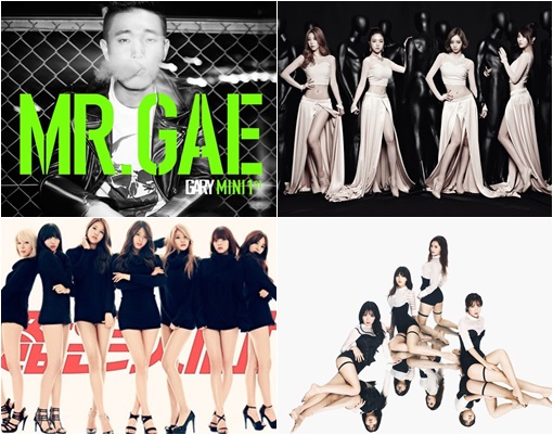 (위 왼쪽부터 시계방향으로) 개리 걸스데이 레인보우블랙 AOA / 사진제공= 리쌍컴퍼니, 드림티엔터테인먼트, DSP미디어, FNC엔터테인먼트