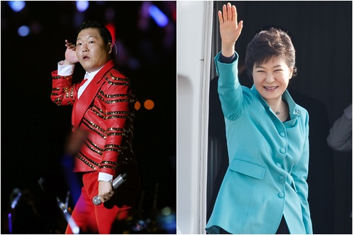 월드스타 가수 싸이(본명 박재상)가 스위스 다보스포럼 '2014 한국의 밤' 행사에서 박근혜 대통령을 만났다.
