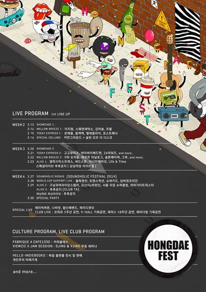 '홍대 페스트'에서는 홍대를 상징하는 클럽과 명소들을 기반으로 한 라이브 프로그램과 다양한 문화 프로그램이 진행될 예정이다.