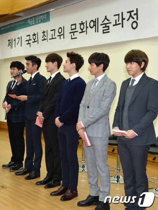 이날 강사로 초청된 슈퍼주니어 신동, 은혁, 성민은 "세계가 K-POP에 물들다"라는 주제로 참석한 의원들에게 강의를 펼쳤다. 2014.2.20/뉴스1