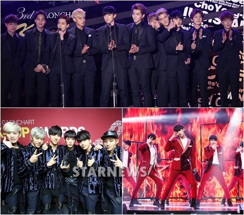 특히 보이그룹이 '쏟아진' 2012년은 현재 최고의 인기를 누리고 있는 엑소(수호 크리스 시우민 루한 레이 찬열 디오 백현 첸 카이 타오 세훈)가 첫 발을 디딘 해이기도 하다. 모든 그룹을 통틀어 범접할 수 없을만큼 최정상에 자리잡고 있는 이들은 가는 곳마다 팬들의 함성이 끊이질 않는다. 지난해에는 가요 시상식의 대상을 휩쓸며 이를 입증했다.