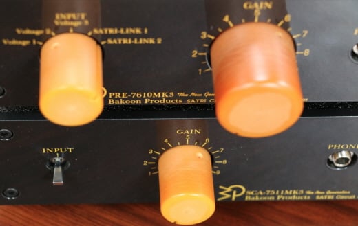 바쿤 파워앰프의 한방과 KEF LS50 유닛의 히든 카드는 역시 'Way Down Deep'에서 맛볼 수 있었습니다. 처음 시작하자마자 들리는 묵직한 베이스 드럼 사운드에 처음 놀랐고, 이 곡에서만 들리는 특유의 방울뱀 꼬리 떠는 소리에 두번 놀랐습니다. '없는 것 내놓으라고 떼쓰지 않기'로 작정한 탓일까요. 15W 출력과 5.25인치 우퍼 조합에서 들리는 저역이라고는 믿기지가 않습니다. 샴페인골드 색깔의 유니 큐 우퍼가 성큼성큼 활달하게 앞뒤로 움직이는 모습은 또다른 쾌감까지 던져줍니다. 이번 조합에서 처음으로 양 스피커를 뚫고 무대가 확 확장되는 그런 느낌이 듭니다. 욕심을 내서 바쿤 프리앰프의 게인을 기존 '5'(12시방향)에서 '7'(2시방향)로 올리니 실제 드럼이 무대 한가운데 떡하니 버티고 있는 모습이 보입니다. 게인노브를 이렇게 올려도 어디 음 하나 뭉개지지 않는 모습 또한 대견합니다. 바쿤의 황갈색 베이클라이트 노브와 KEF LS50의 샴페인골드 유니 큐가 서로 눈웃음 치며 수신호를 나누는 환영, 이건 너무 과장이겠지요?