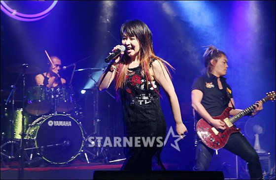 록밴드 체리필터가 11일 오전 서울 마포구 서교동 홍대롤링홀에서 열린 싱글앨범 '안드로메다'(Andromeda) 컴백 쇼케이스에서 열창하고 있다.