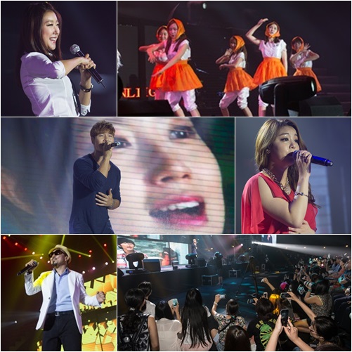 3시간 가까이 진행된 공연 내내 박수와 환호가 끊이지 않았다. 게스트로 무대에 선 크레용팝이 '빠빠빠'를 부르자 흰색 티셔츠에 녹색 야광봉을 든 중국판 '팝저씨'(크레용팝 아저씨 팬을 일컫는 말)들이 일제히 기립해 "퍄오량(중국말로 예쁘다)"을 외쳤고, '앙큼한 돌싱녀' OST '모르겠죠'로 문을 연 오유준과 미스코리아 출신으로 구성된 그룹 케이걸즈, '꽃보다 남자' OST '파라다이스' '나쁜 마음을 먹게해'를 부른 신민철의 무대에도 호응이 이어졌다.
