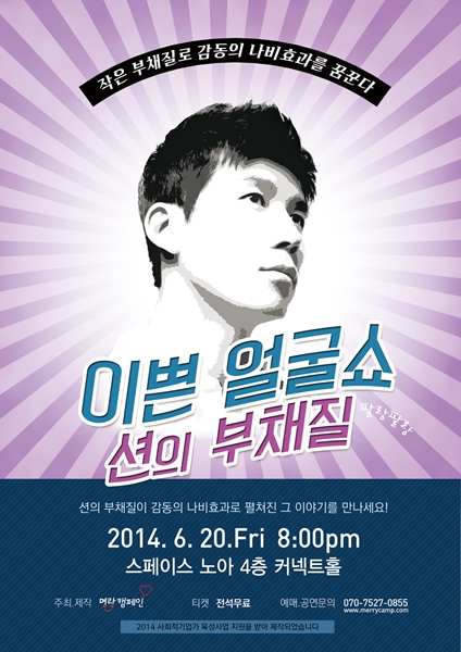 션과 사회적 기업인들의 함께하는 첫 번째 특별한 기부쇼 '이쁜얼굴 쇼'는 무료 선착순 초대로 진행되며, 명랑캠페인 홈페이지를 통해 신청 참여할 수 있다.