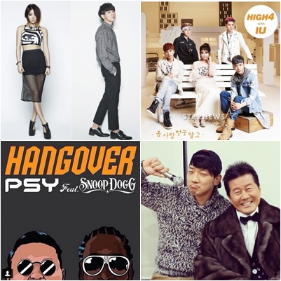 싸이는 지난 9일 세계적인 힙합 뮤지션 스눕독과 함께한 신곡 '행 오버'를 공개했다. 글로벌 히트를 기록한 '강남스타일', '젠틀맨'의 후속곡이라는 것만으로 큰 관심을 받았다. 전작과 달리 서구 음악시장에 초점을 맞춘 '행 오버'는 미국 남부 힙합의 한 장르인 '트랩(trap)' 사운드를 기반으로 만들어졌다. 뮤직비디오에서 싸이는 스눕독과 함께 한국의 음주문화인 '소주잔 돌려 마시기'를 하거나 사우나, 편의점, 당구장, 노래방 등에서 유머러스한 동작을 선보여 즐거움을 줬다. 두 월드스타의 묵직한 존재감만으로 길이 남겨질 '월드 콜라보' 곡.