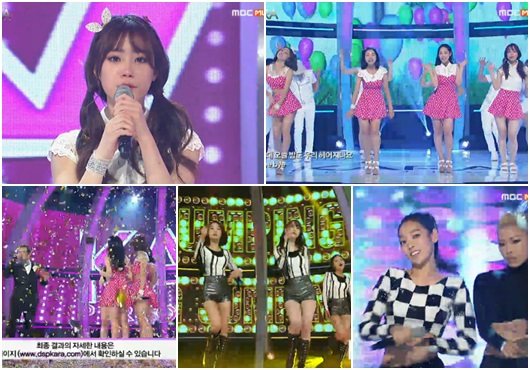 이날 생방송 무대에서 소진 채원 영지 소민 등 4명은 '점핑(Jumping)' '투나이트(2night)' 등 기존 카라의 히트곡 무대를 선보였고, 여기에 각자 개성을 살린 개별 무대도 선사, 가수로서 역량을 뽐냈다. 시윤 유지 채경은 비록 생방송 무대에 진출하지 못했지만 카라의 '위 위드 유(We with You)'로 특별 무대를 꾸며 이목을 끌었다.