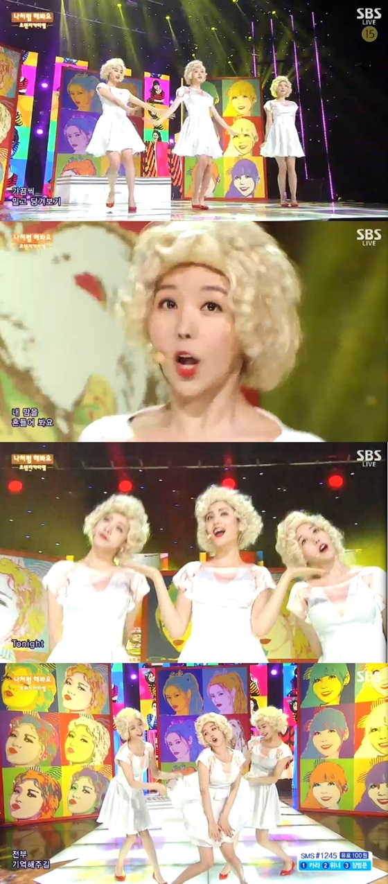 이날 오렌지캬라멜 멤버들은 흰 원피스와 금발의 가발, 붉은 입술과 입술 옆 점으로 팝스타 마릴린 먼로로 변신해 눈길을 끌었다. 마릴린 먼로로 변신한 멤버들은 '나처럼 해봐요'의 중독성 강한 안무로 깜찍함을 함께 선사했다.