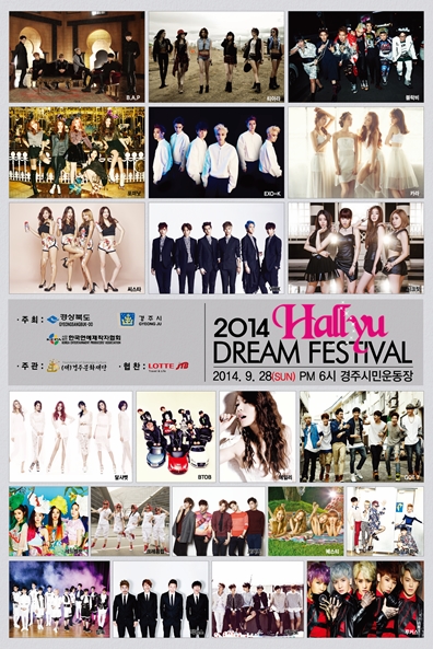 국내 인기 가수들이 대거 출연하는 '2014 한류드림페스티벌'이 오는 28일 경주에서 열린다.