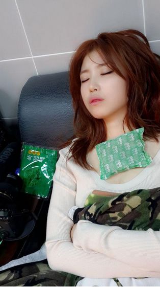 걸 그룹 시크릿(한선화 송지은 정하나 전효성)의 전효성이 팩으로 가슴을 찜질하며 낮잠 자는 모습을 공개했다.