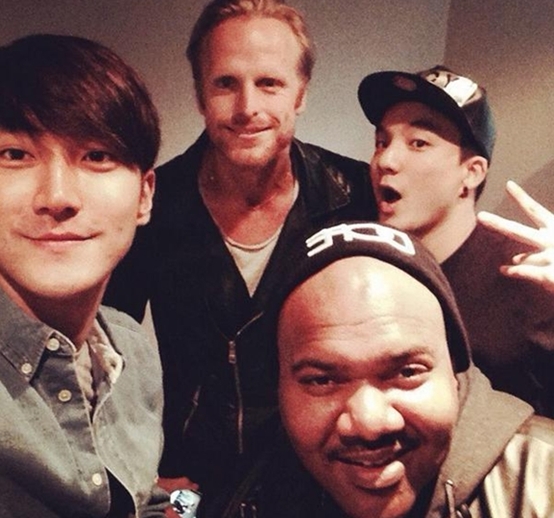최시원은 26일 자신의 트위터에 외국 유명 작곡가 지미 버니, 안드레아스 오버그 등과 함께한 사진을 공개했다.