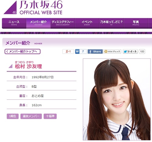 일본 유명 걸 그룹 노기자카46의 멤버 마츠무라 사유리(22)가 30대 유부남과의 불륜설에 대해 해명했다.
