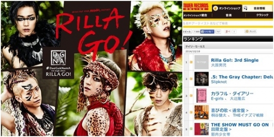 20일 소속사 품엔터테인먼트에 따르면 대국남아는 지난 18일 세 번째 싱글 '릴라고 (Rilla Go)'로 일본 최대 음반사인 타워레코드의 일간 판매차트 1위를 차지했다.
