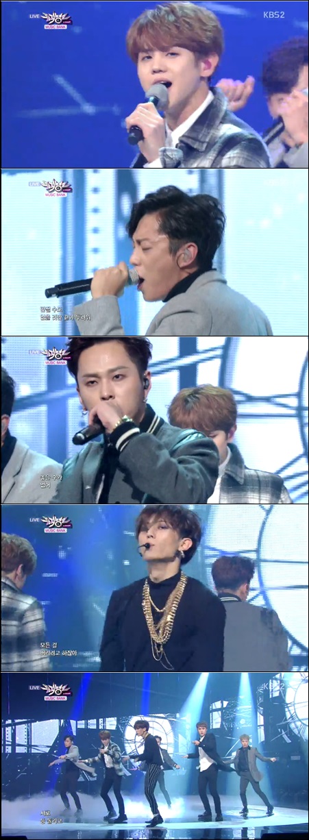 비스트는 7일 오후 방송된 KBS 2TV 가요순위 프로그램 '뮤직뱅크'에서 신곡 '12시30분' 무대를 꾸몄다.