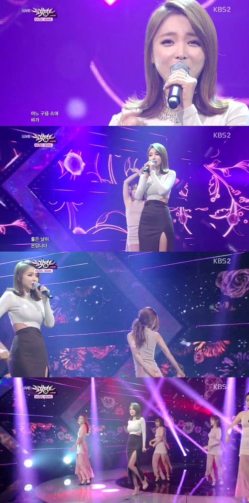 홍진영은 14일 오후 서울 여의도 KBS 신관 공개홀에서 생방송으로 진행된 KBS 2TV 가요프로그램 '뮤직뱅크'에 출연, 첫 미니앨범 '인생노트(Life Note)'의 타이틀곡 '산다는건' 무대를 꾸몄다.