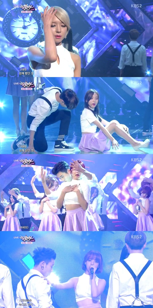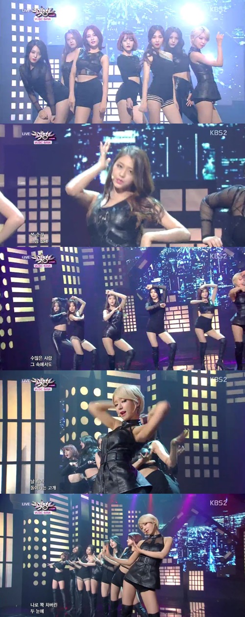 AOA는 14일 오후 서울 여의도 KBS 신관 공개홀에서 생방송한 KBS 2TV 가요프로그램 '뮤직뱅크'에 출연, 신곡 '타임'과 '사뿐사뿐' 무대를 펼쳤다.
