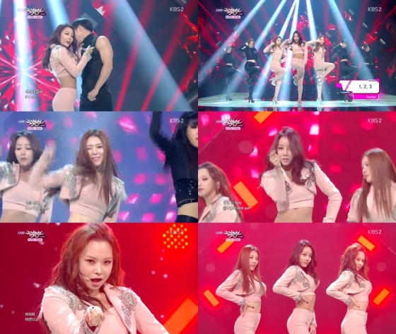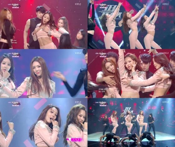 멤버들은 근육질의 남자 댄서들과의 밀착댄스에도 전혀 흔들리지 않는 보컬 실력을 선보였다.