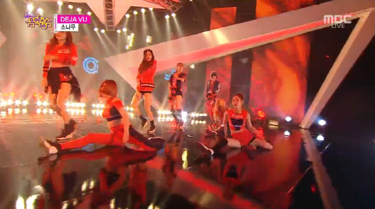소나무는 이날 오후 생방송된 MBC 가요 순위 프로그램 '쇼! 음악중심'에 출연, 최근 발표한 데뷔곡 '데자뷰(Deja Vu)' 무대를 꾸몄다.
