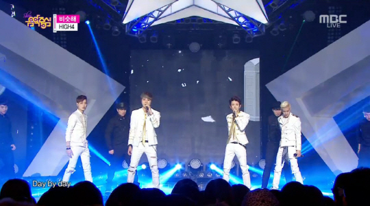 하이포는 10일 오후 생방송된 SBS 가요 순위 프로그램 '쇼! 음악중심'에 출연, 최근 발표한 신곡 '비슷해' 무대를 선보였다.