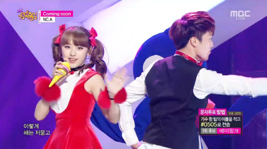 앤씨아는 10일 오후 생방송된 SBS 가요 순위 프로그램 '쇼! 음악중심'에 출연, 최근 선보인 신곡 '커밍 순' 무대를 꾸몄다.