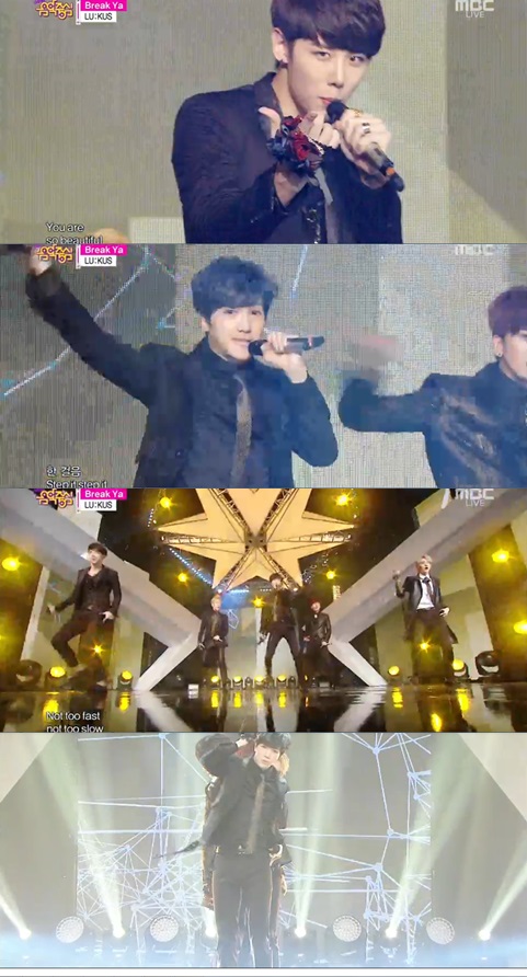 루커스는 10일 오후 생방송으로 진행 된 MBC 가요 순위 프로그램 '쇼! 음악중심'에 출연, 신곡 '브레이크야(Break Ya)' 무대를 선사했다.
