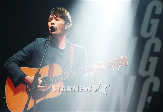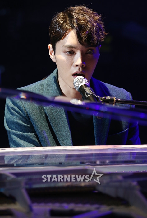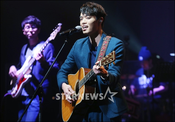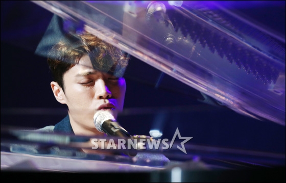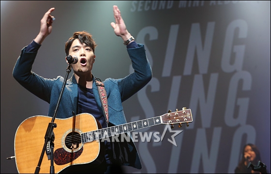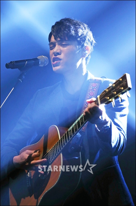 가수 에디킴이 21일 오전 서울 송파구 방이동 올림픽공원 K아트홀에서 열린 미니 2집 '싱싱싱'(SING SING SING) 쇼케이스에서 수록곡을 선보이고 있다.