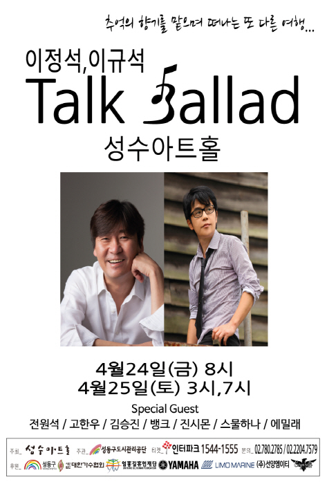 대학가요제 수상자 출신으로 인연을 맺은 이정석과 이규석이 토크발라드 앙코르 콘서트를 개최한다.