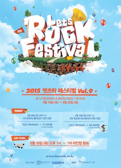 한편 올해 9회째를 맞는 2015 렛츠락페스티벌은 오는 9월 19일, 20일 양일간 한강 난지공원 내 중앙잔디광장과 잔디마당에서 펼쳐진다. 티켓예매는 인터파크 티켓에서 가능하다.