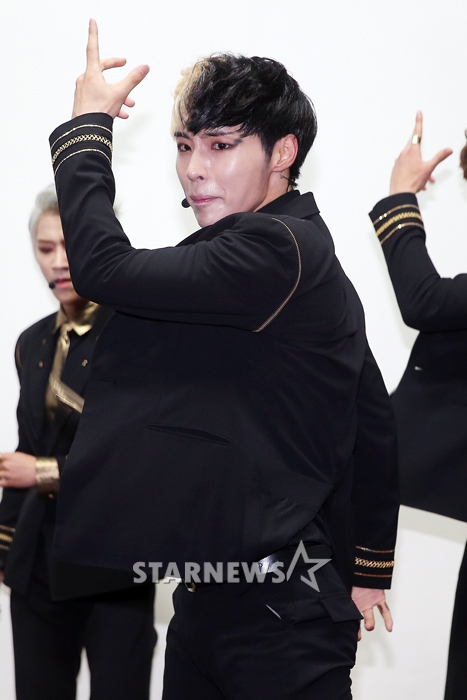 그룹 BTL이 9일 오후 서울 중구 신당동 긱카페 아키에서 열린 첫 번째 미니앨범 '골드문' 쇼케이스에서 멋진 무대를 선보이고 있다.