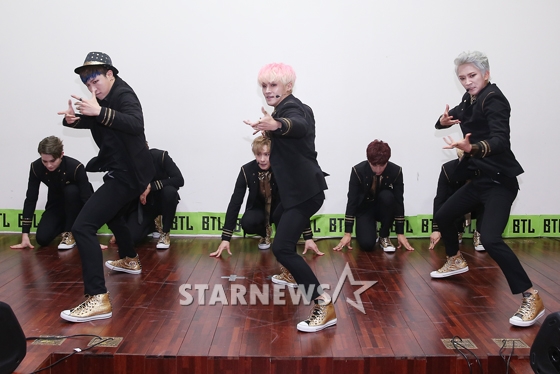 그룹 BTL이 9일 오후 서울 중구 신당동 긱카페 아키에서 열린 첫 번째 미니앨범 '골드문' 쇼케이스에서 멋진 무대를 선보이고 있다.