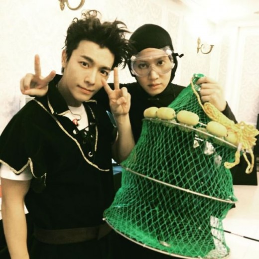 공개된 사진에는 김희철과 동해의 다정한 투샷이 담겨 있다. 특히 김희철은 완벽한 해녀 복장을 갖춘 채 비장한 결심이 서린 얼굴로 카메라를 향해 브이(v)를 그리고 있어 웃음을 자아낸다.