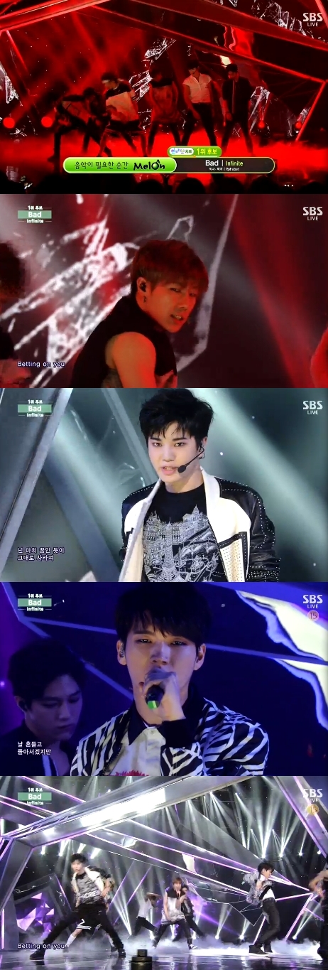 인피니트는 26일 오후 방송된 SBS '인기가요'에서 1위 후보로 '배드'를 선보였다.