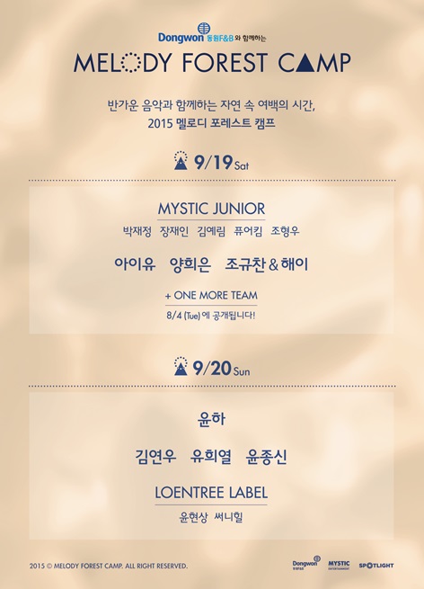 미스틱엔터테인먼트가 주최하는 9월 음악 페스티벌 '2015 멜로디 포레스트 캠프(이하 멜포캠)'의 최종 라인업이 완성됐다.