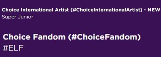 슈퍼주니어 팬클럽 ELF도 이날 시상식에서 최고 팬덤상(Choice Fandom)을 수상하는 영광을 누렸다.
