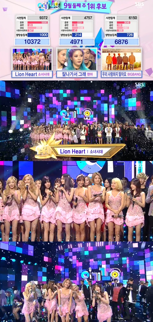 소녀시대는 여느 때보다 치열했던 가요계에서 존재감을 과시, 19관왕으로 활동을 마무리 하며 유종의 미를 거뒀다. 소녀시대는 "오늘 '라이온 하트' 마지막 무대인데 끝까지 1위를 할 수 있어서 감사드린다"라고 소감을 밝혔다.