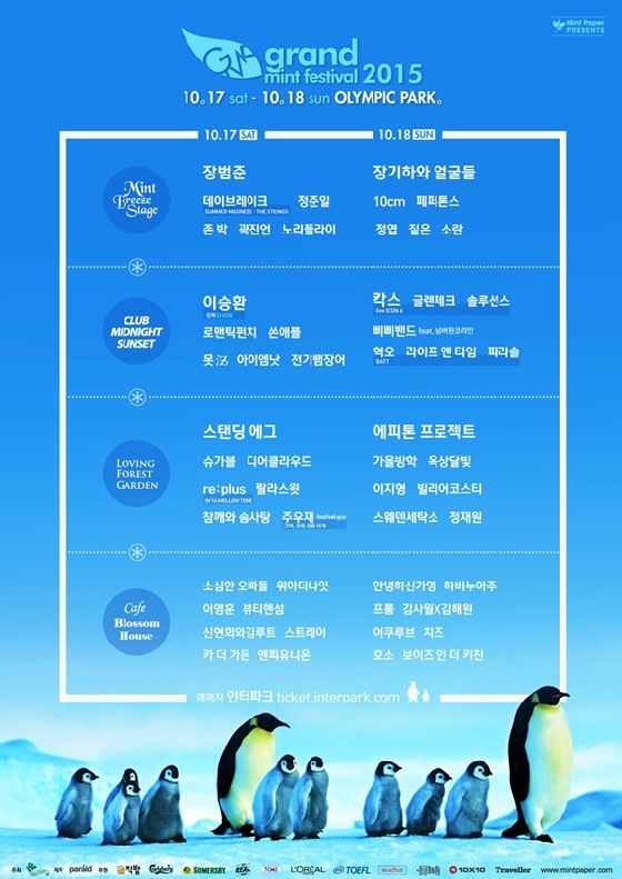 국내 대표 가을 음악 페스티벌 '그랜드 민트 페스티벌 2015(이하 GMF2015)' 최종 라인업이 발표됐다.