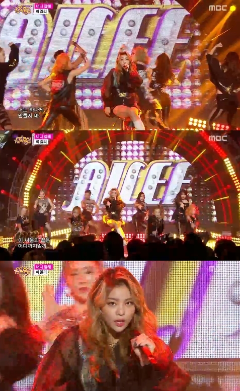 에일리는 17일 오후 방송된 MBC 가요 순위 프로그램 '쇼! 음악중심'(이하 '음악중심')에서 '너나 잘해'로 무대에 올랐다.