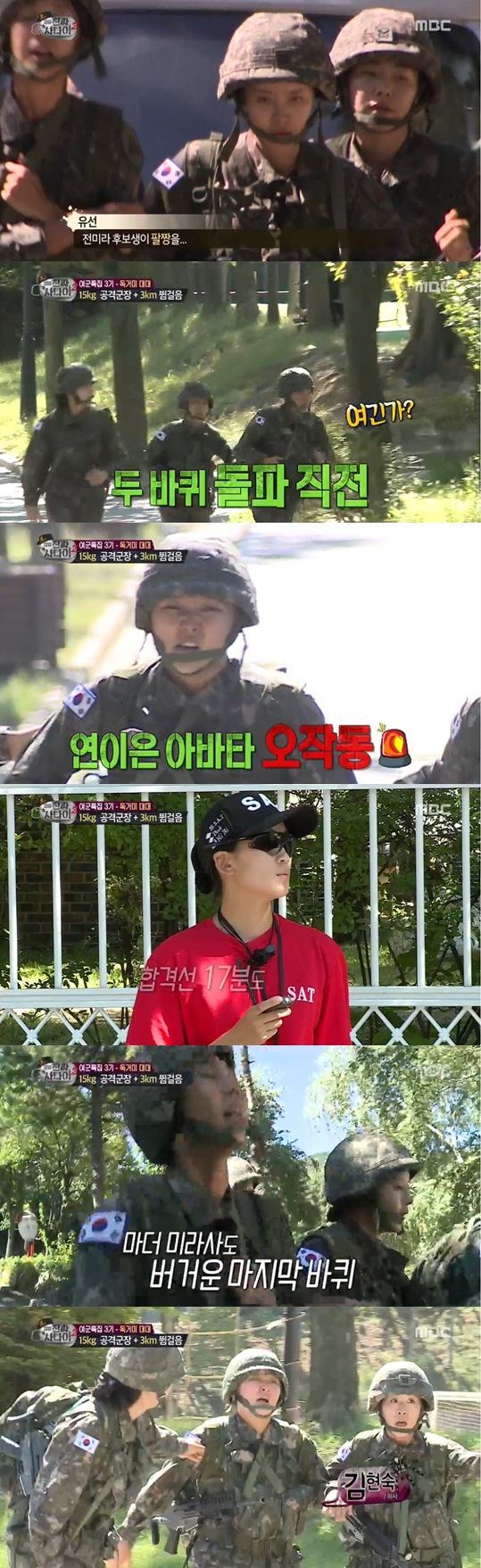 18일 오후 방송된 MBC '일밤-진짜사나이 여군특집3기'에서는 독거미대대에 입소한 6명의 여군 멤버 김현숙 유선 한채아 한그루 전미라 박규리가 독거미대대만의 특수훈련을 받는 모습이 그려졌다.