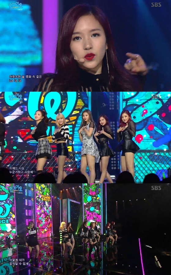트와이스는 8일 오후 방송된 SBS 가요순위프로그램 '인기가요'에서 데뷔곡 'OOH-AHH하게(우아하게)' 무대를 선보였다.