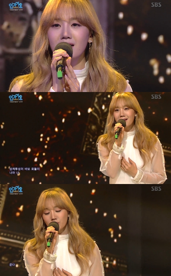 주는 8일 오후 방송된 SBS 가요순위프로그램 '인기가요'에서 신곡 '울고 분다' 컴백 무대를 선보였다.