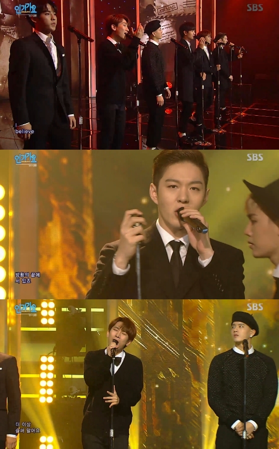 비투비는 8일 오후 방송된 SBS 가요순위프로그램 '인기가요'에서 미니 7집 앨범 '아이 민(I Mean)'의 타이틀곡 '집으로 가는 길' 무대를 꾸몄다.